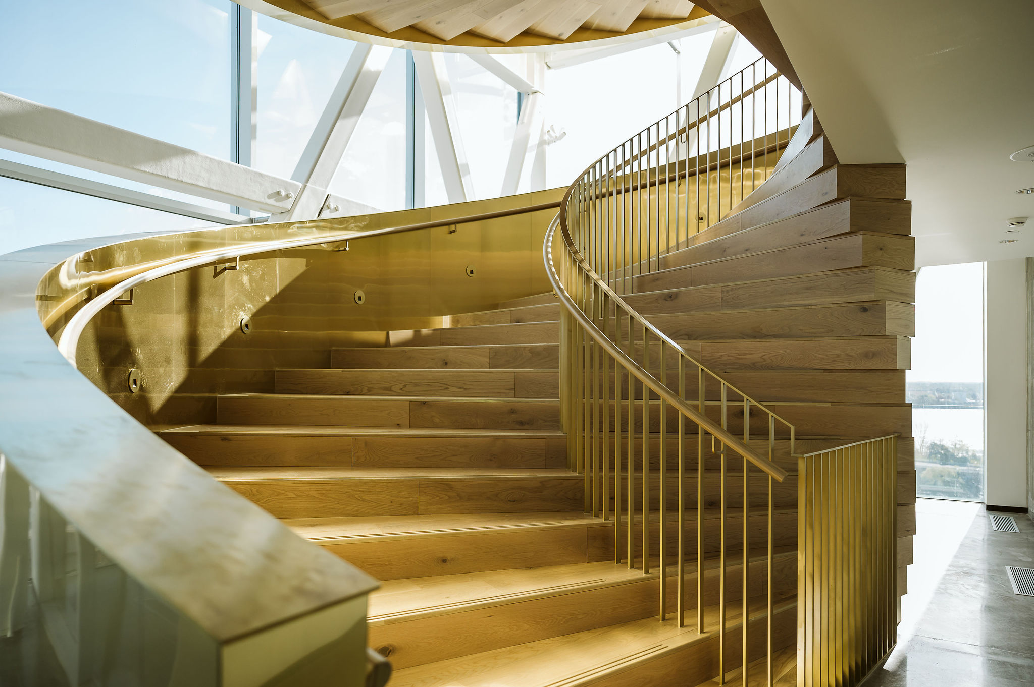 Escalier doré structural vers la cage de verre au niveau 13 (non disponible pour personne à mobilité réduite)